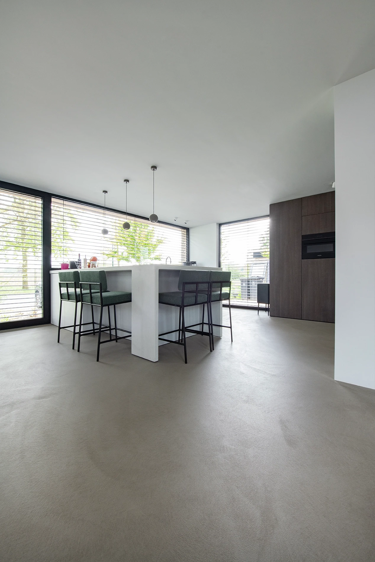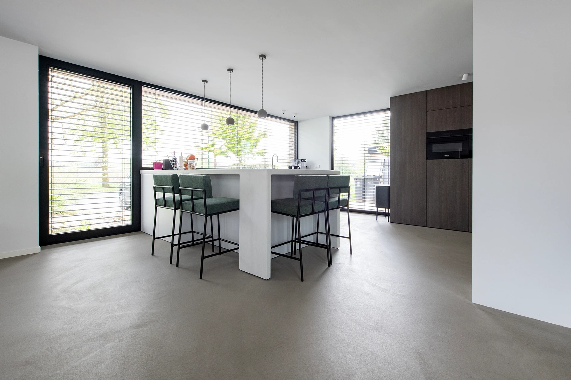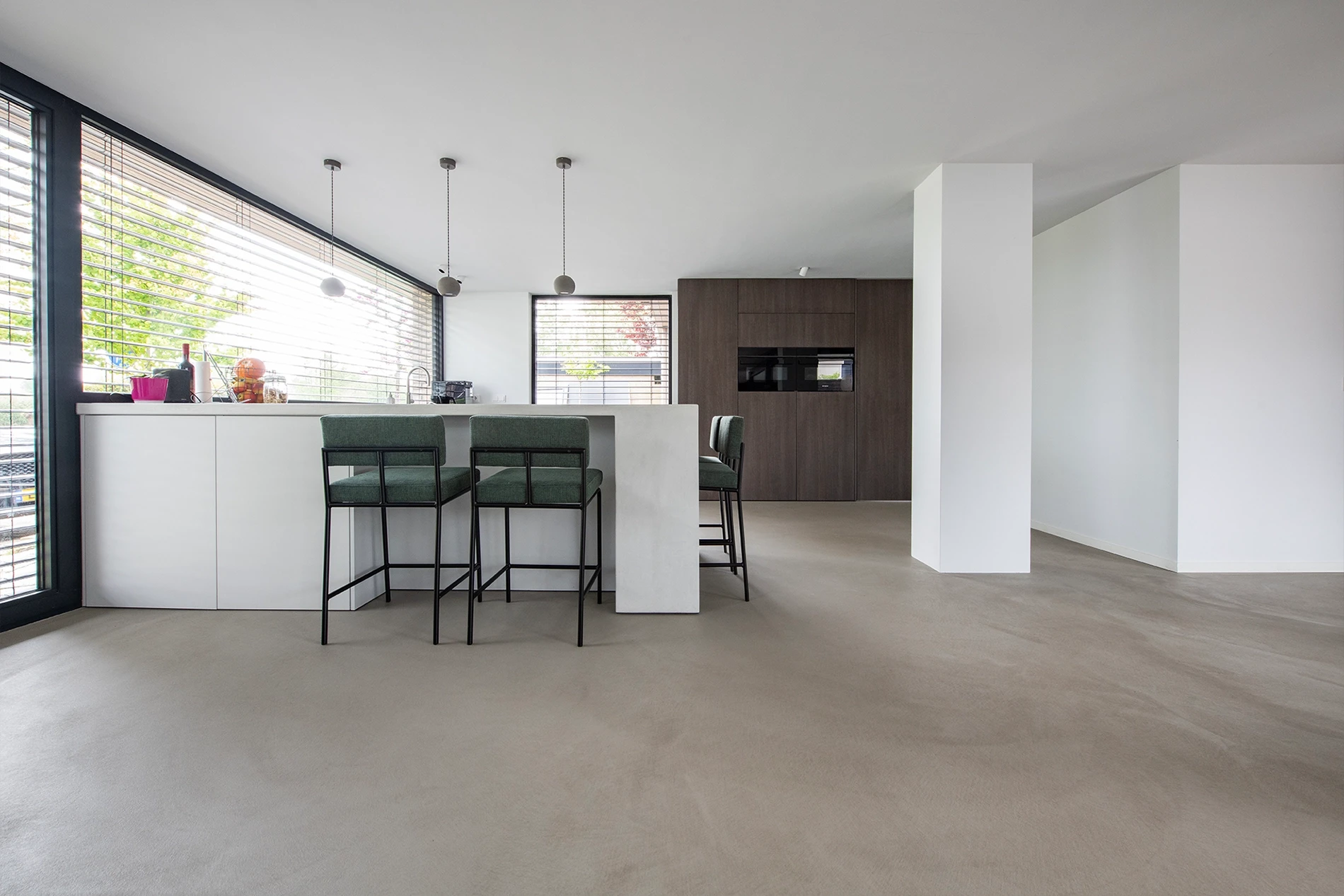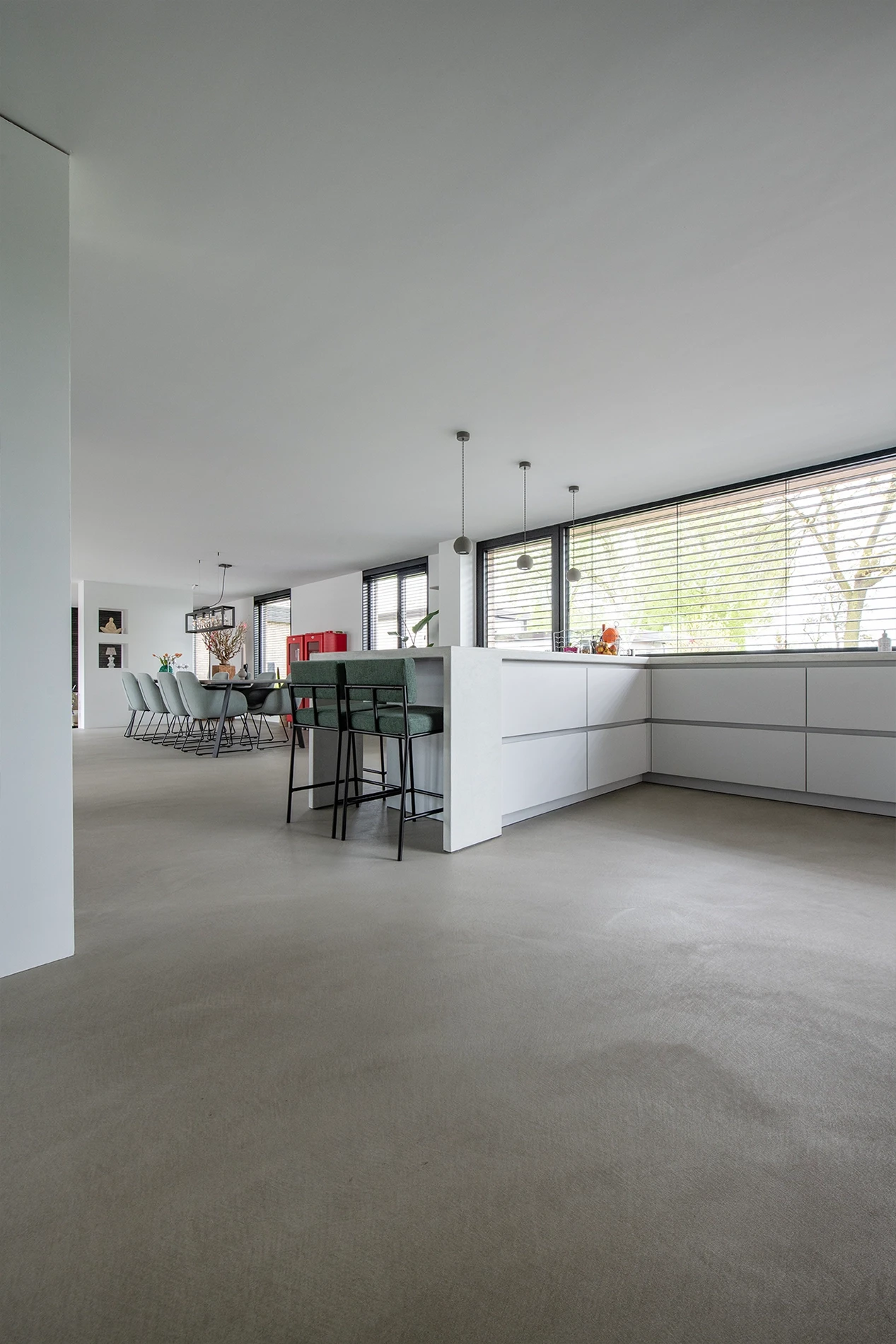 Im Boxtel (NL) wollten die Bewohner ihr Haus umbauen. Sie entschieden sich für einen Premium Leef-Beton Boden in der Farbe Fossil. Auf einer Fläche von über 70 m² wurde im Erdgeschoss dieser coole Wohnbetonboden verlegt. Dadurch werden der Flur, die Toilette und die große Wohnküche nahtlos miteinander verbunden. Schauen Sie sich die Bilder an, denn der Boden sieht wieder wunderschön aus!
