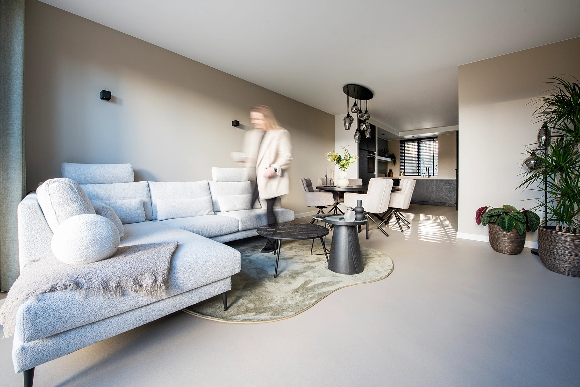 Farbe: DuneDer Premium Leef-Beton Boden passt perfekt zum Wohnstil dieser wunderschönen Villa.