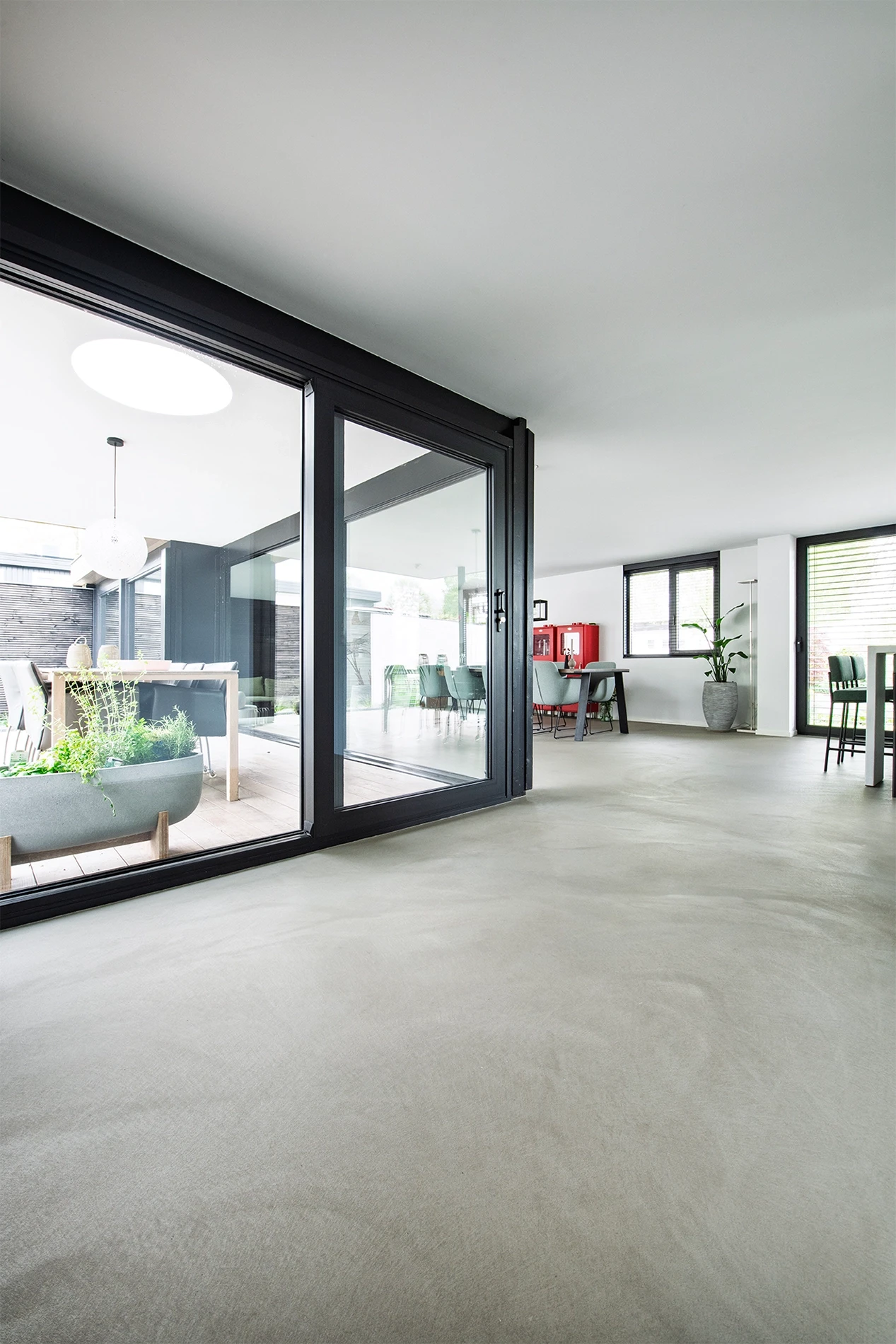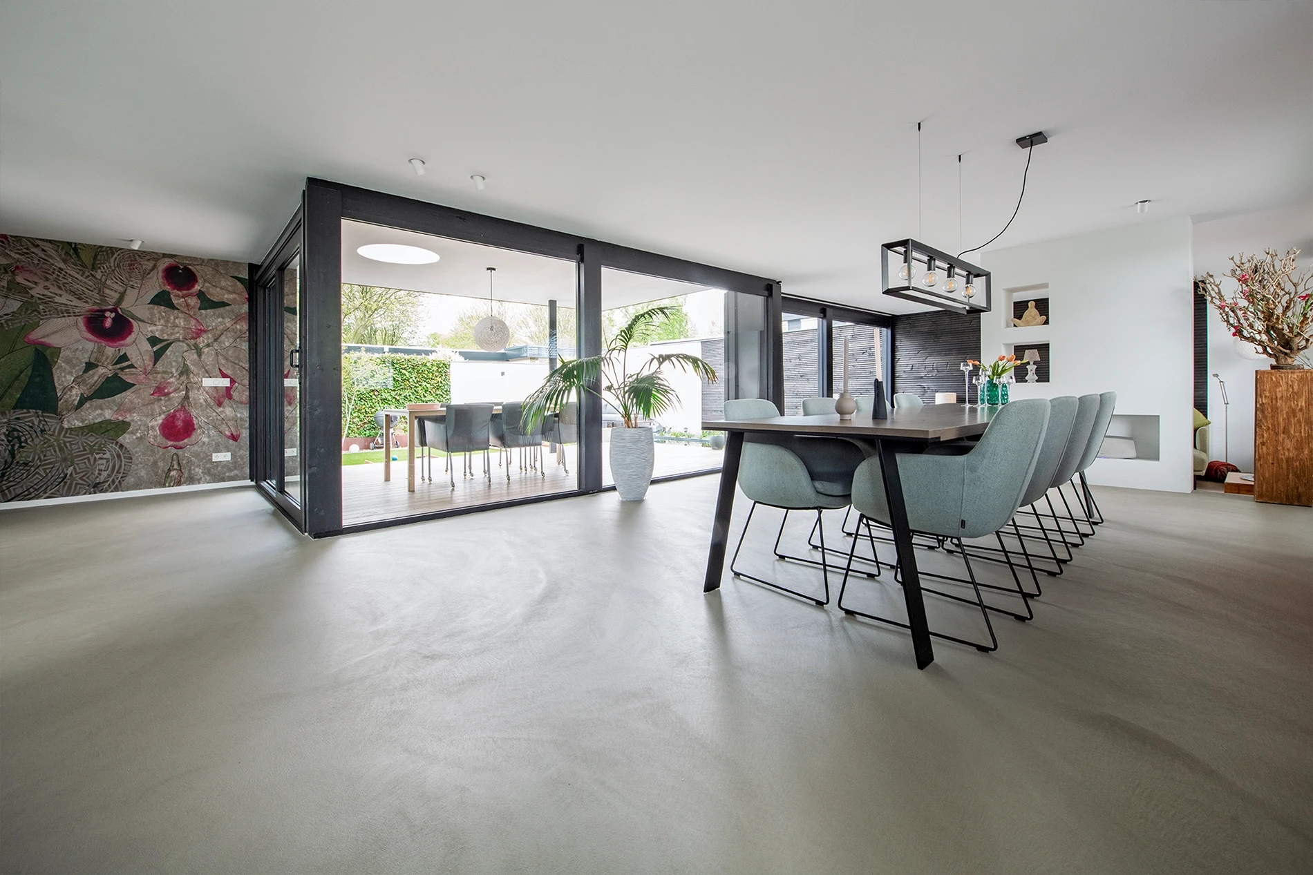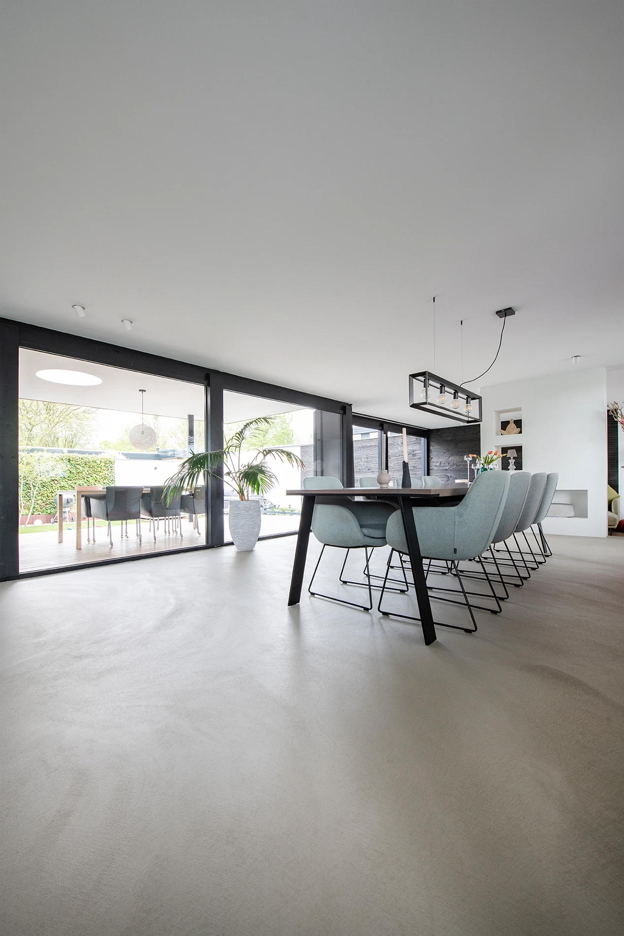 In Boxtel, North Brabant, the residents wanted to renovate their home. They chose a Premium Leef-Beton floor in the color Fossil. This cool living concrete floor was installed on the ground floor, covering an area of over 70 m². This seamlessly connects the hallway, toilet, and the large open kitchen. Just look at the pictures – the floor looks beautiful!