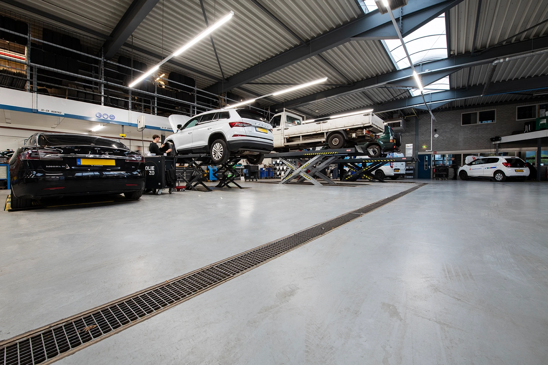 In een autogarage moet de vloer bestand zijn tegen diverse uitdagingen. Denk daarbij aan gemorste olie en brandstof en daarnaast ook aan vocht en weekmakers die vrijkomen uit rubberen autobanden. Om die reden wordt in een werkplaats altijd het gebruik van een vloer op basis van epoxy geadviseerd.