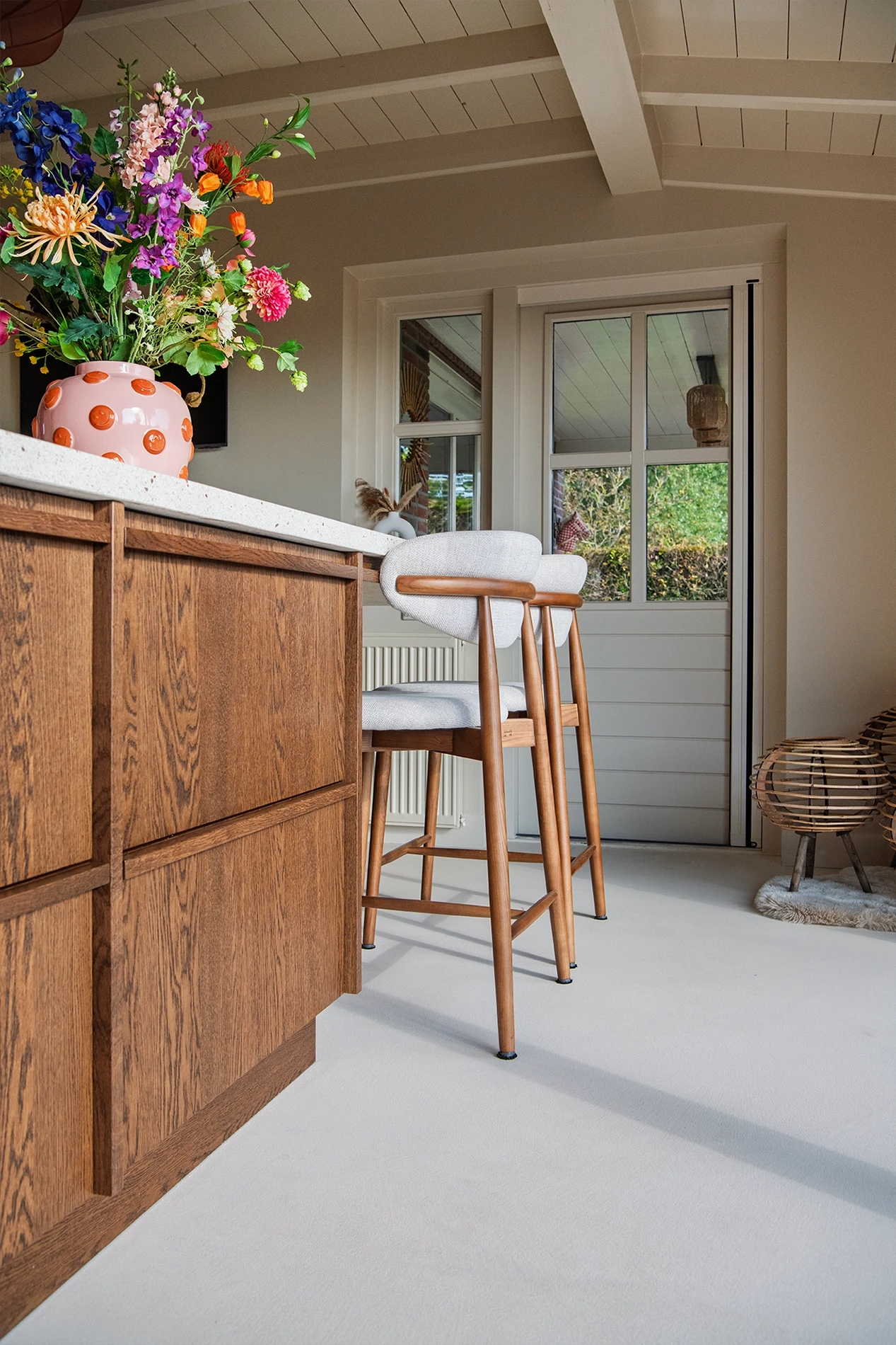 Toen wij onze woonboerderij gingen verbouwen, waren we op zoek naar een vloer die niet alleen mooi is, maar ook praktisch in het dagelijks leven. Via via kwamen we terecht bij Kemenade Vloeren, en dat bleek een schot in de roos. Na een goed advies kozen we voor een Premium Leef-Beton vloer: veel kleurkeuze, makkelijk in onderhoud én supersterk. Met een jonge tweeling in huis is dat geen overbodige luxe.