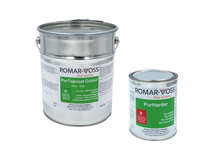 Een duurzame polyurethaan rolcoating (2K) die wordt ingezet als verzegeling op een ingestrooide PU gietvloer.